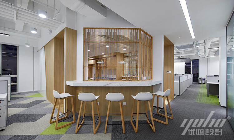 设计师从人文情怀角度出发,对于员工工作期间接听电话做了充足的设计考虑。电话亭设有拉帘,可以关闭以营造私人空间。互通式吧台最大的特点就是表达出一种穿透力,使空间看上去更为灵动与多变。